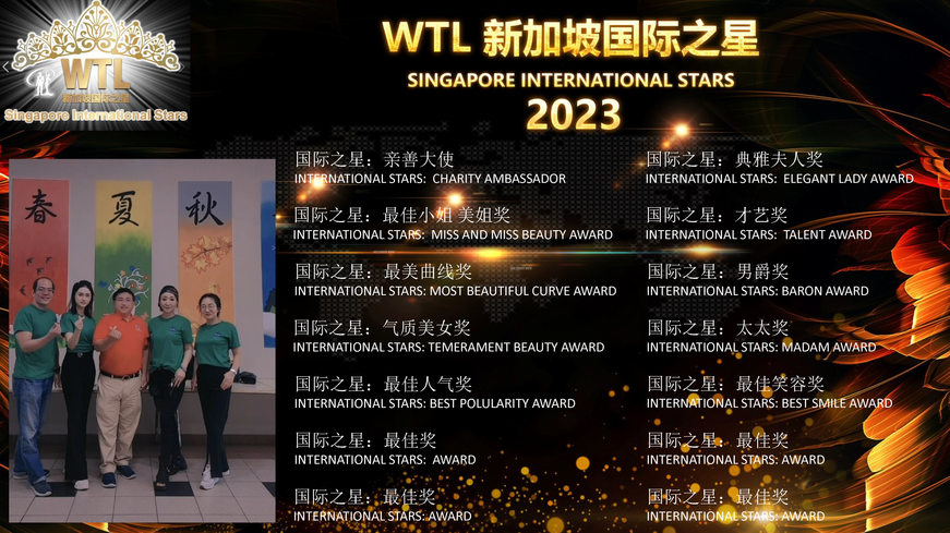 WTL第四届选美活动, WTL新加坡国际之星2023,在各界朋友们的大力支持下,于2023年11月30号圆满成功